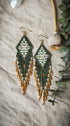 The alluring design of the Lokah earrings in a one of a kind palette of metallic forest green, stony browns, caramel, and sweet touches of gold. This variation features a final flourish of Sunstone gemstone beads on each central fringe. The Lokah earrings are more than just jewelry, handwoven with care and intention to inspire creativity and love in all beings. Perfect for every day wear or wear them when you need an upliftment of divine inspiration.