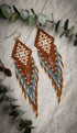 The alluring design of the Lokah earrings in a sweet combination of auburn sienna, glass skylight blue, moonlight silk glass, and iridescent cream featuring a final flourish of Labradorite gemstone beads on each central fringe. The Lokah earrings are more than just jewelry, handwoven with care and intention to inspire creativity and love in all beings. Perfect for every day wear or wear them when you need an upliftment of divine inspiration.